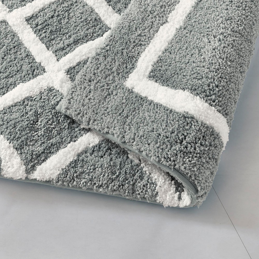The Madison Park Bittman Reversible High Pile Tufted Bath Rug offers a modern update to your bathroom. Fully reversible, this high pile bath rug features a geometric fretwork design that flips to a classic border pattern, on the reverse, for two soft contemporary looks. This bath rug is also OEKO-TEX certified, meaning it does not contain any harmful substances to ensure quality comfort and wellness. Easy to coordinate with your bathroom décor, this reversible tufted bath rug comes in two sizes with several color options and is machine washable for easy care. A rug pad is recommended to keep the bath rug secured in place.