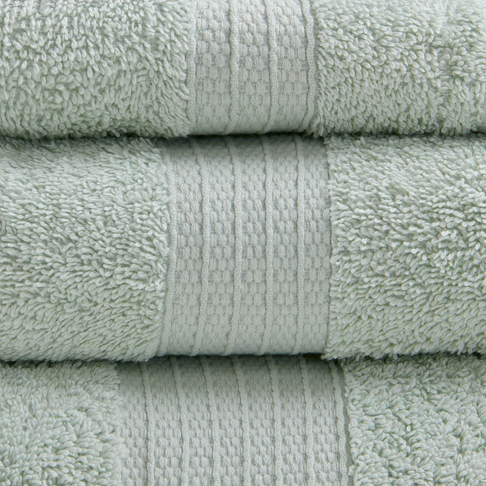 | Madison Park 6-Piece 2 Bath Towels: 30"W x 54"L (2) 2 Hand Towels: 18"W x 30"L (2) 2 Wash Towels: 13"W x 13"L (2) 100% organic cotton Modern/Contemporary Style Includes 6 Piece(s) Wash before first use. Machine wash warm on gentle cycle with like colors. Only use non-chlorine bleach when needed. Avoid contact with products containing benzoyl peroxide. Do not wash with sharp items that may pull the towel fibers, such as zippers or hooks. To maintain the quality and performance of your towels, avoid the use of fabric softeners and dry sheets. Tumble dry low, remove promptly. Do not iron. Before use, simply shake towels to restore fluff and pile. The Madison Park 6 Piece Organic Cotton Towel Set brings an all-natural, fresh touch to your bathroom decor. These 650gsm towels feature long staple GOTS certified organic yarns that are exceptionally soft and absorbent, while the low twist construction provides more air and space between fibers to dry faster for maximum use and comfort throughout the day. Machine washable for easy care, each towel is also OEKO-TEX certified, meaning it does not contain any harmful substances or chemicals, ensuring quality comfort and wellness. Set includes: 2 oversized 30x54" bath towels, 2 standard 18x30" hand towels, and 2 standard 13x13" wash towels. |
