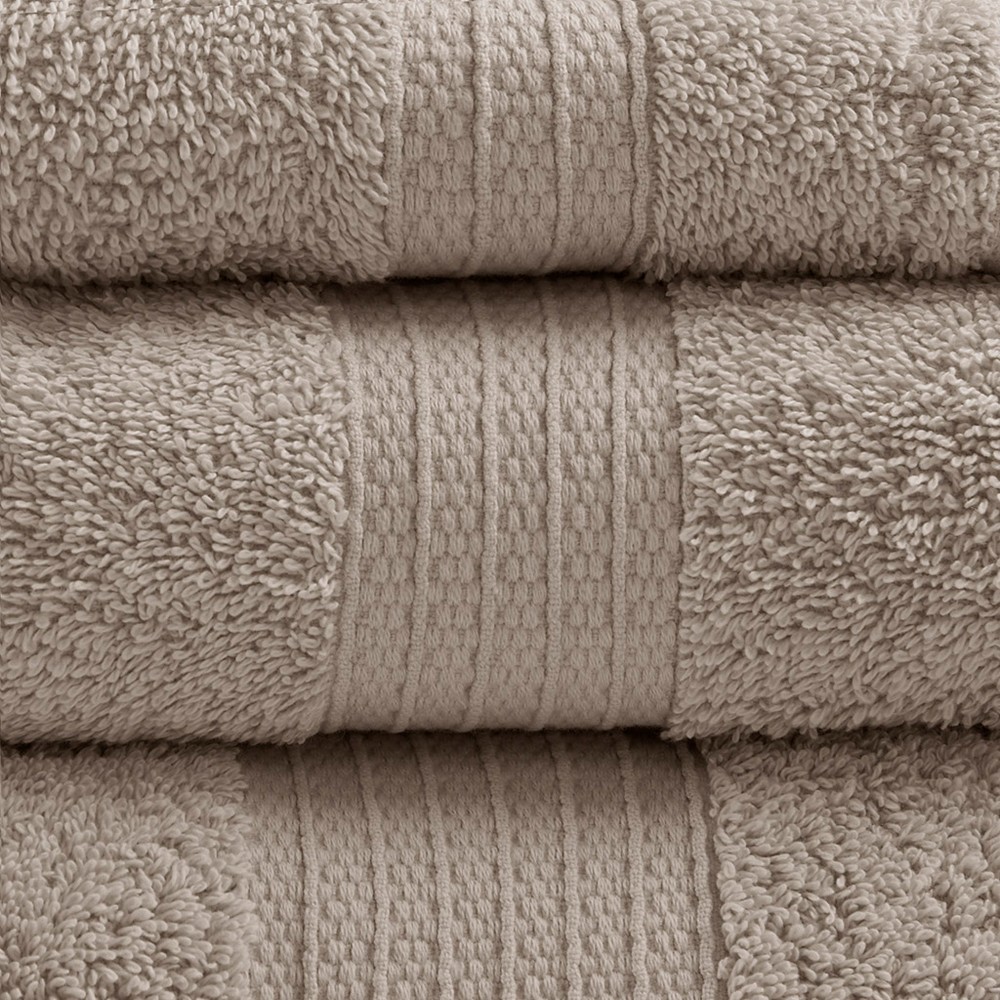 | Madison Park 6-Piece 2 Bath Towels: 30"W x 54"L (2) 2 Hand Towels: 18"W x 30"L (2) 2 Wash Towels: 13"W x 13"L (2) 100% organic cotton Modern/Contemporary Style Includes 6 Piece(s) Wash before first use. Machine wash warm on gentle cycle with like colors. Only use non-chlorine bleach when needed. Avoid contact with products containing benzoyl peroxide. Do not wash with sharp items that may pull the towel fibers, such as zippers or hooks. To maintain the quality and performance of your towels, avoid the use of fabric softeners and dry sheets. Tumble dry low, remove promptly. Do not iron. Before use, simply shake towels to restore fluff and pile. The Madison Park 6 Piece Organic Cotton Towel Set brings an all-natural, fresh touch to your bathroom decor. These 650gsm towels feature long staple GOTS certified organic yarns that are exceptionally soft and absorbent, while the low twist construction provides more air and space between fibers to dry faster for maximum use and comfort throughout the day. Machine washable for easy care, each towel is also OEKO-TEX certified, meaning it does not contain any harmful substances or chemicals, ensuring quality comfort and wellness. Set includes: 2 oversized 30x54" bath towels, 2 standard 18x30" hand towels, and 2 standard 13x13" wash towels. |
