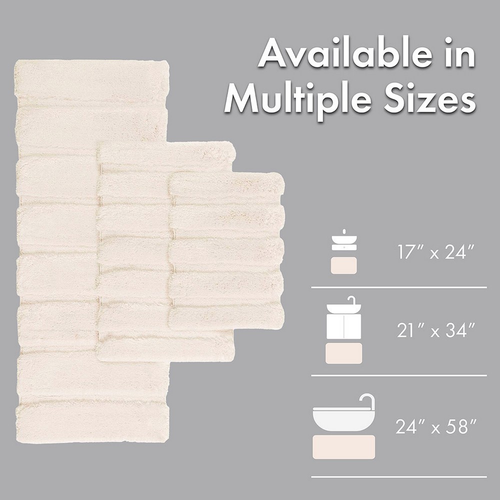 | Madison Park 24x58" 1 Rug: 24"W x 58"L 1500gsm polyester, tufted Casual Style Includes 1 Piece(s) Machine wash cold seperately, on gentle/delicate cycle. Use mild detergent. Do not bleach. Tumble dry low, remove promptly. Some linting may occur due to nature of fabric. Do not iron. Do not dry clean. Transform your bathroom into a simple and stylish haven with our Madison Park Tufted Pearl Channel Rug. This solid tufted bath rug features a high-low stripe design with a light sheen and luster that adds rich dimension and texture for the perfect shabby chic touch your bathroom decor. Constructed from 100% macro-spun polyester fibers, each tufted bath rug is also durable for long-lasting, incredibly soft. Machine washable for easy care and available in a soft palette of fade and stain resistant colors, this tufted bath rug is the perfect addition to complete any bathroom decor! |