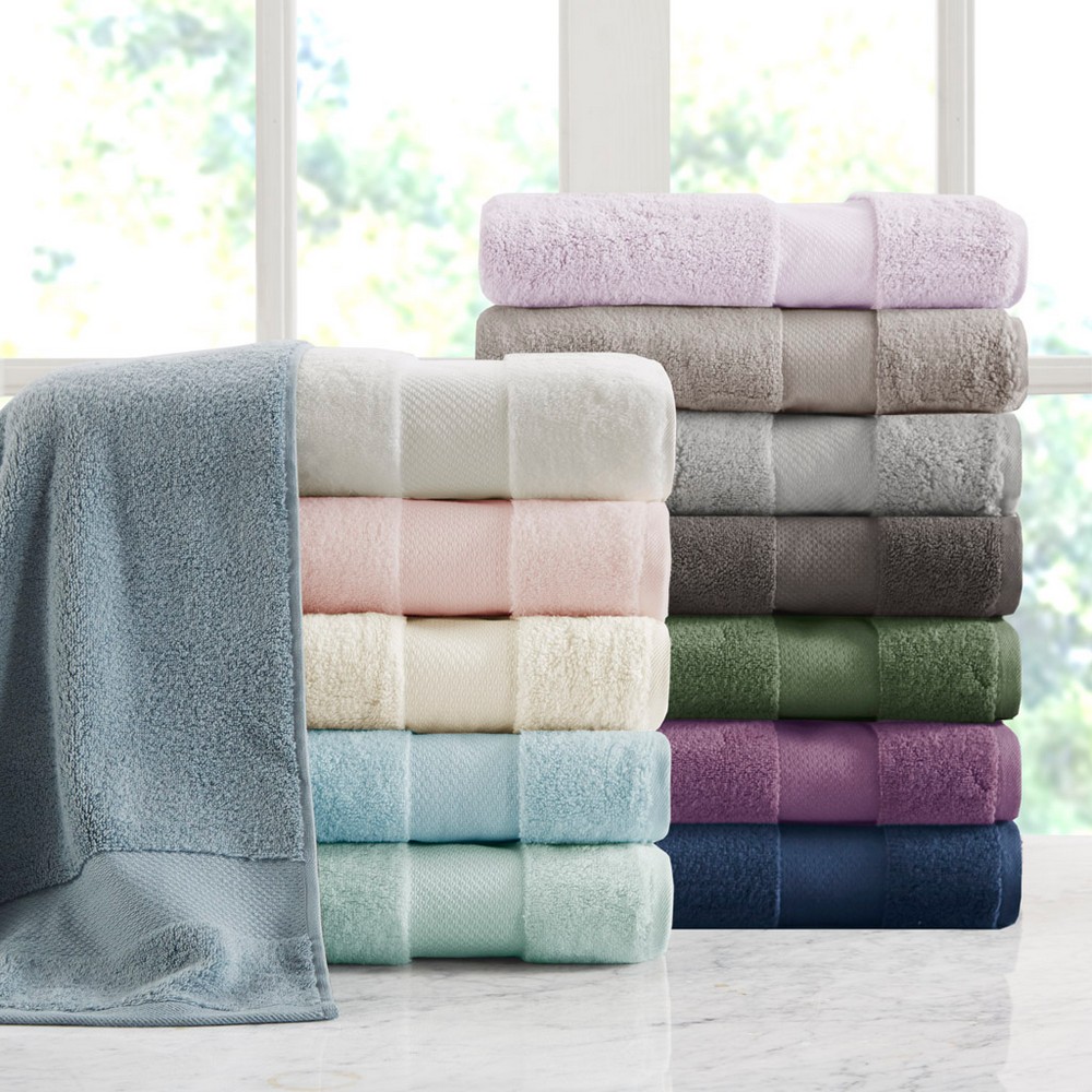 | Madison Park Signature 6-Piece 2 Bath Towels: 30"W x 58"L (2) 2 Hand Towels: 16"W x 30"L (2) 2 Wash Towels: 13"W x 13"L (2) 100% Turkish Cotton Transitional Modern Style Includes 6 Piece(s) Wash before first use. Machine wash warm on gentle cycle with like colors. Only use non-chlorine bleach when needed. Avoid contact with products containing benzoyl peroxide. Do not wash with sharp items that may pull the towel fibers, such as zippers or hooks. To maintain the quality and performance of your towels, avoid the use of fabric softeners and dry sheets. Tumble dry low, remove promptly. Do not iron. Before use, simply shake towels to restore fluff and pile. Elevate your bathroom decor with the luxuriously soft and indulgent comfort of our Madison Park Turkish cotton bath towel set. MADE IN TURKEY. These oversized cotton towels are made from smooth low-twist yarns with 600gsm weight, creating a soft and plush hand feel that is also highly absorbent for the ultimate in luxury. Each towel features a dobby border and end hem to add a classic, yet refined touch to the design; while also Made in Green by Oeko-Tex Certified for superior quality towel. Transform your bathroom into a relaxing spa-like retreat with this luxury complete 6 Piece bath towel set. |