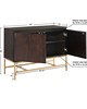 | Martha Stewart See below 1 Accent Cabinet: 40"W x 16"D x 30"H Legs Size: 0.75"W x 10.5"H Top Size: 40"W x 16"D x 0.75"T Shelf Size: 18.75"W x 13.25"D x 0.75"T Interior Size Above Shelf: 18.75"W x 13.25"D x 7.5"H Interior Size Below Shelf: 18.75"W x 13.25"D x 7.5"H Shel Material:Solid wood frame, MDF top and panel with solid wood veneer, metal base Frame Material: Solid wood Leg Material:metal Wood Finish: Morrocco Metal Finish:Gold Metal Base Modern/Contemporary Style Includes 1 Piece(s) Wipe clean with damp cloth The Martha Stewart Allister Accent Cabinet offers a sleek modern storage update to your home. This accent chest features a brown wood finish on the solid wood frame with a gold metal base, creating a rich contemporary look. The two doors are secured by magnetic catches and open to two shelves for plenty of storage space. Base assembly required, tools included. |