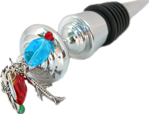 | The airplane theme bottle stopper is embellished with the jet charm, the airplane charm, the helicopter charm and colorful beads. The bottle stopper has multiple suction rings for a great seal. |