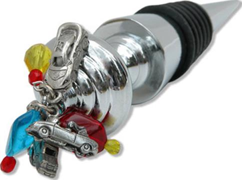 | The car and limo theme bottle stopper is embellished with a limo charm, a convertible with a girl charm, a race car charm, and colorful glass beads. This chrome-plated stopper has multiple suction rings that create a great seal. |