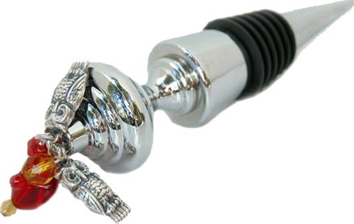 | Wine Bottle Stopper is embellished with owl charms and colorful beads. Chrome plated with multiple suction rings this bottle stopper is cone shaped to fit almost any size bottle. |