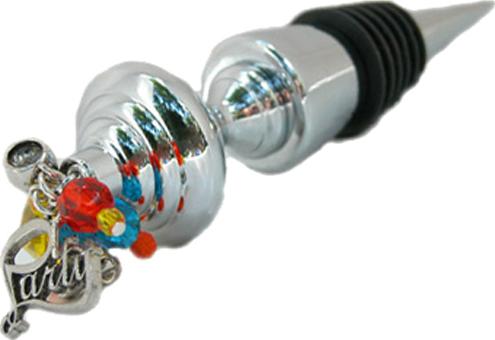 | The party theme bottle stopper is embellished with 2 different charms that say, "Party," a wine goblet charm, and colorful glass beads. This chrome-plated stopper has multiple suction rings that create a great seal. |