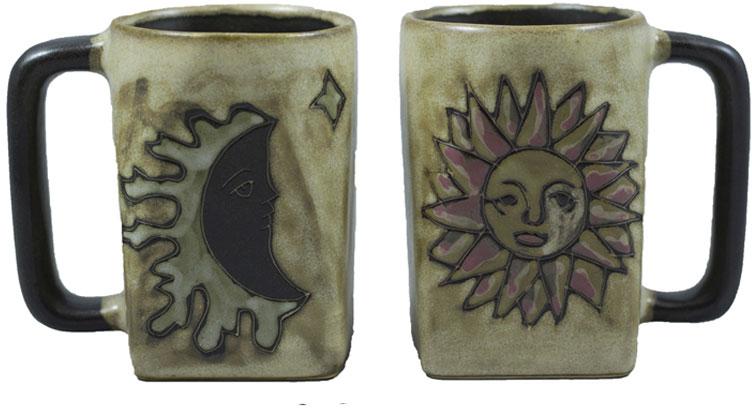 | MARA STONEWARE Sun and moon on a tan background make this 12oz square bottom mug a perfect gift for yourself or someone you love. A very durable material, Stoneware will last for years while keeping its original beauty. Each piece is fired twice at a high temperature and finished by hand. Minor imperfections are a common characteristic of hand-finished stoneware products.