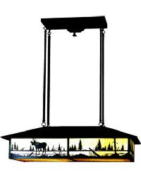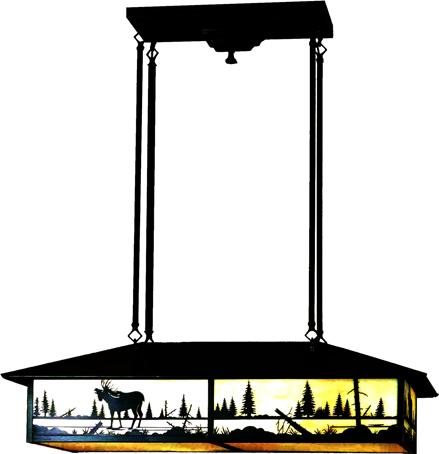 | Bulb: 4 regular 100 Watt 35"L Moose On Lake Oblong Pendant Total Height: 37.5" Total Length: 35" Total Depth: 20" Shade: 37.5"Height x sq Custom Crafted In Yorkville, New York Please Allow 30 Days |