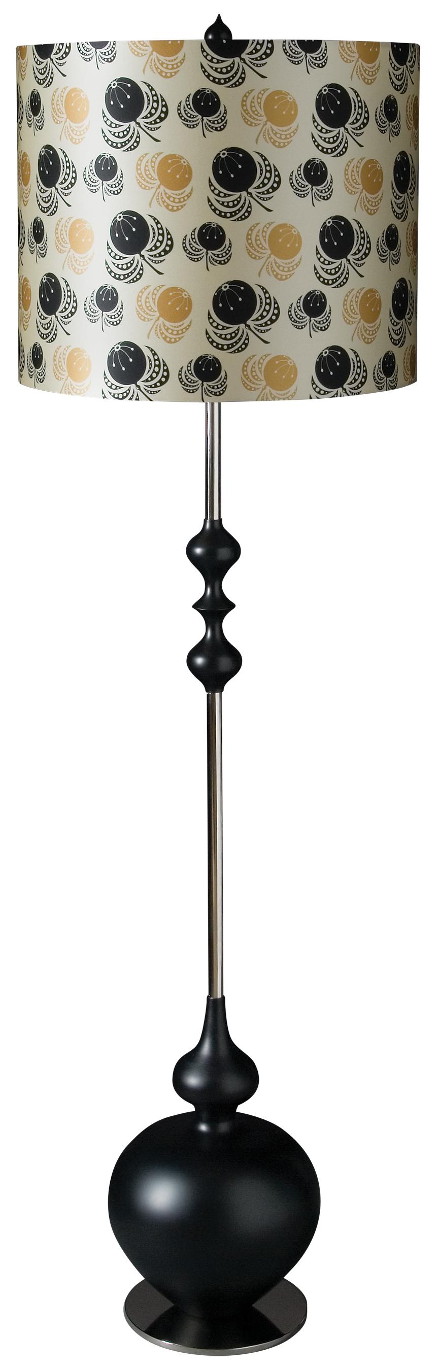 | Finish: Polished Nickel and Ebony Height: 62", Shade: 18" x 18" x 15", Footprint: 9" Max Wattage: 150-Watts 3-Way Turn Key, Cord Color: Clear Available in Ebony and Walnut Wood, Brushed Brass and Polished Nickel Finish. Shown in Polished Nickel and Ebony with Yellow Plucky Pods Fabric. |