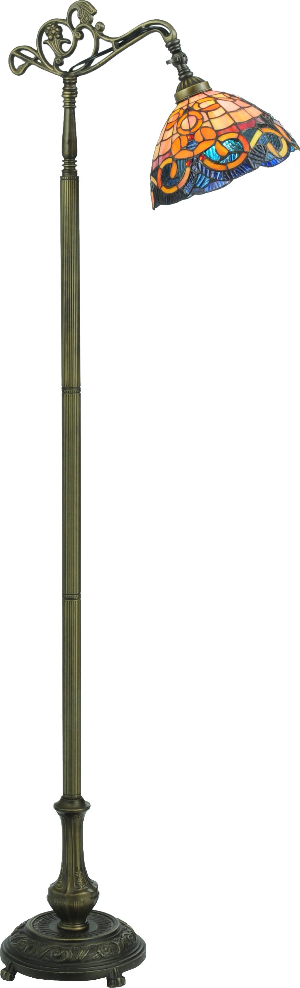 | Floor lamp base is hand finished in a warm antique brass. Red, yellow and orange scrolls complemented by caribbean blue waterglass. Ul Listed. Meyda Tiffany FLOOR LAMPS |