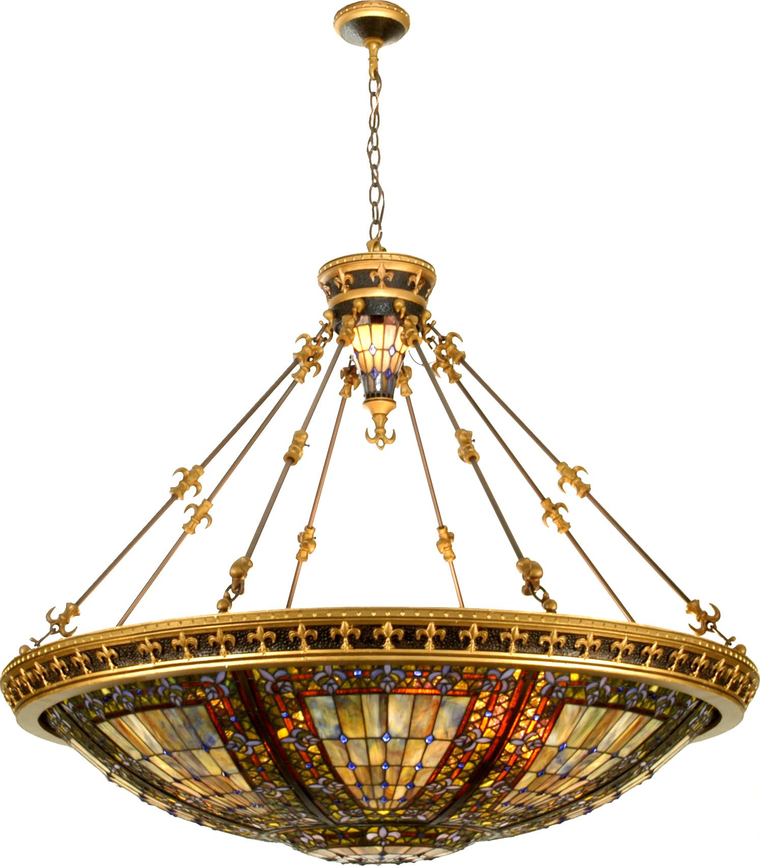 | A Meyda Tiffany Original Design, The Fleur-De-Lis Inverted Pendant Is An Intricate