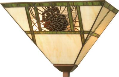 | Moss green bands divide the bone beige stained glass in this wall sconce. Pinecones and pine needles make this a charming rustic light. Meyda Tiffany INVERTED PENDANT |