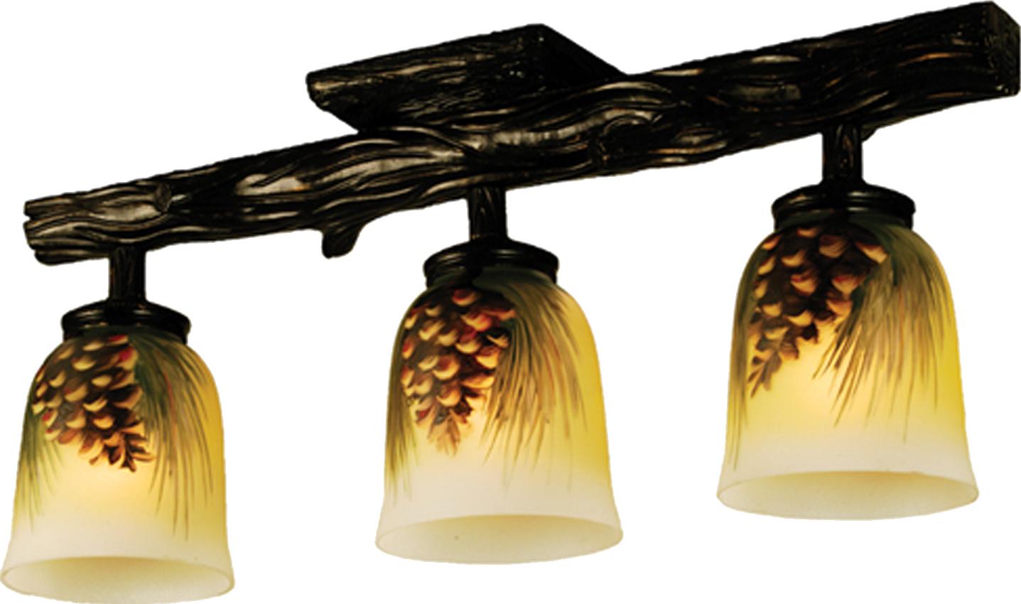 Meyda Tiffany Northwoods Pinecone 3 Lt Hand Painted Semi-Flushmount 34470