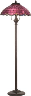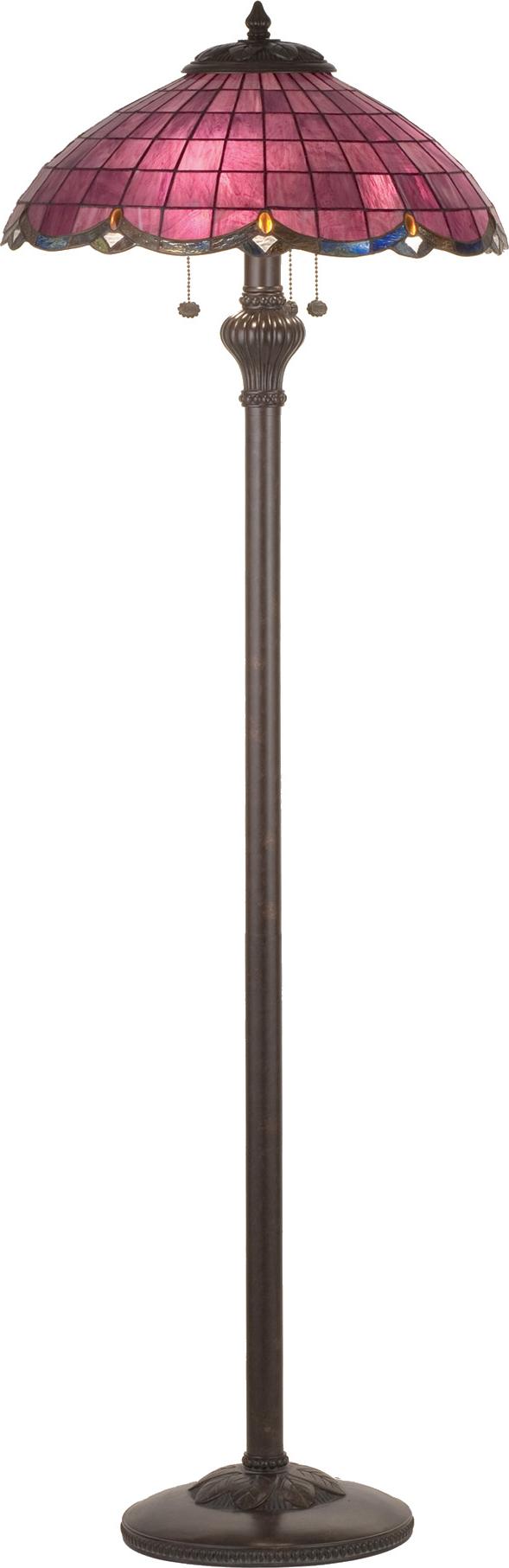 Plum/Raspberry Colored Glass Shades Trimmed In Swooping Scallops Of Amethyst Hues Accented By Sparkling Amber Jewels And Clear Granite Glass. This Floor Lamp Features Carved Leaves In A Verdi Washed Ebony Finish. The Early 20th Century Inspired Motif, Re-Explored By The Meyda Tiffany Design Team, Integrates Art Nouveau With Victorian.