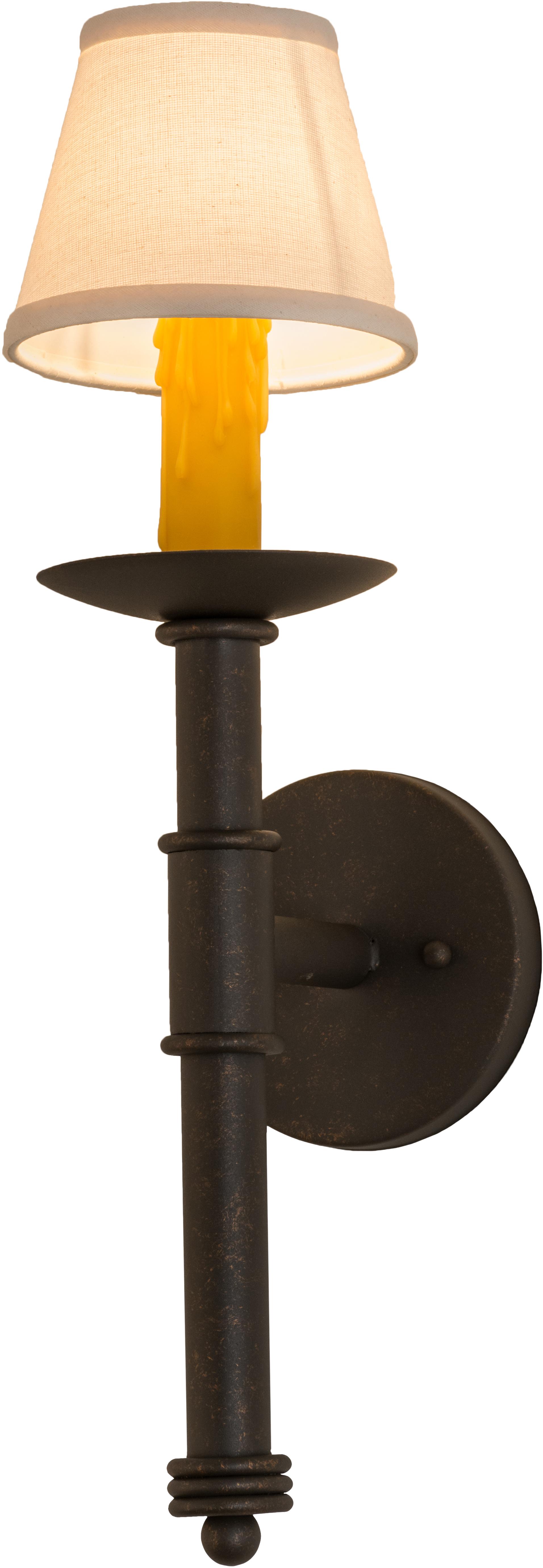 | styleed as a dramatic accent piece for any room orcorridor, this wall sconce features a Natural LinenTextrene shade perched on a faux candlelight andbobeche with telescopic styled accents. This fixtureoffers decorative hardware in a Gilded Tobacco finish.Handcrafted by Meyda artisans in the USA, the fixtureis available in custom sizes, styles, colors anddimmable energy efficient lamping options. Meyda Tiffany One Light Depth: 7 Bulb Type: CNDL Bulb Qty: 1 Bulb Wattage: 40 |