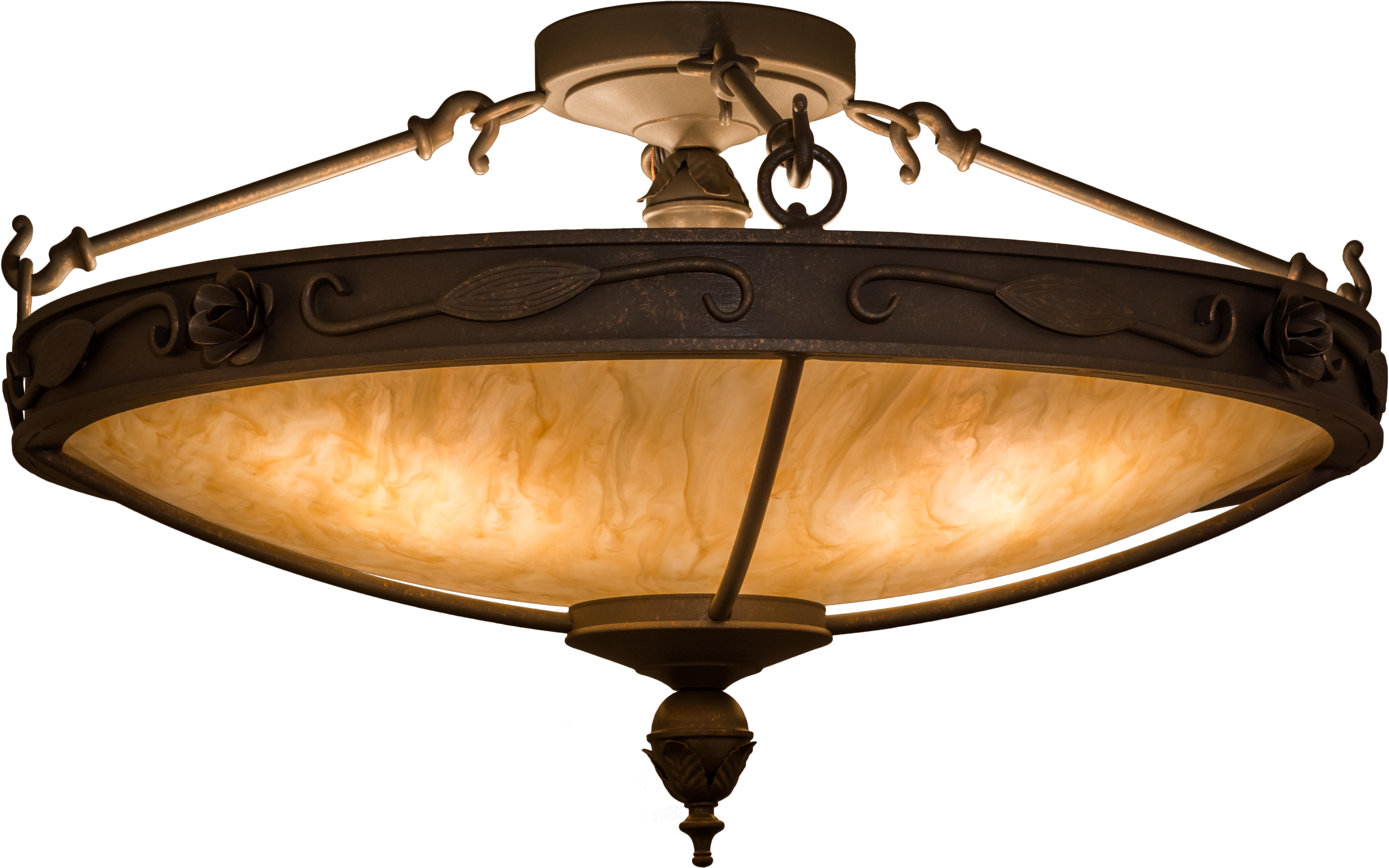 | Decorative accents and rose medallions highlight thisimpressive rustic steel ceiling fixture which features aCarmel Onyx acrylic shade for a marble look. Thefixture is enhanced with sturdy, detailed hardware anda classic finial hand finished in Gilded Tobacco. Thefixture is ideal for hallways, living rooms and otherrooms in both residential and commercial environments.The fixture is handcrafted by Meyda artisans in UpstateNew York, in the USA. Options include dimmable LED andother energy efficient lamping, as well as customsizes, styles and colors. Meyda Tiffany Fluscious Mount Bulb Type: MED Bulb Qty: 4 Bulb Wattage: 40 |