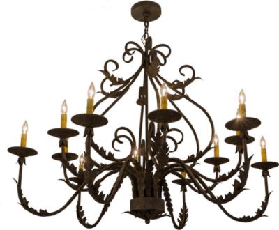 | An extravagant chandelier style comes to light withelegance and glamour. Faux Amber candlelights perchedon fanciful bobeches are embraced by exquisite leafaccented arms and scrolled accents featured in anAntiquity finish. This lovely fixture is handcrafted inour facility in Yorkville, New York. Custom sizes,styles, colors and dimmable energy efficient lampingoptions are available. Meyda Tiffany Chandelier Bulb Type: CNDL Bulb Qty: 12 Bulb Wattage: 40 |
