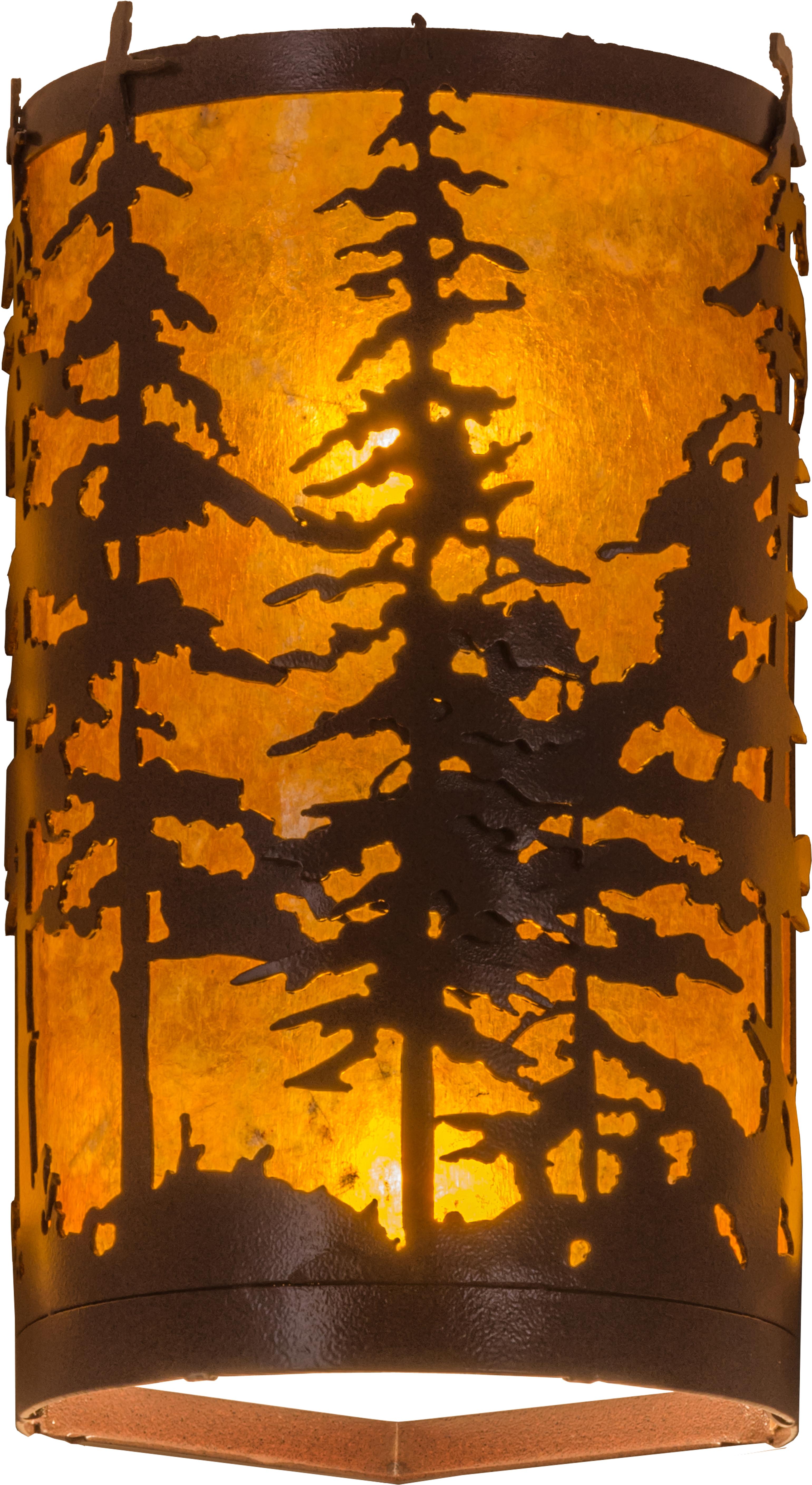 | A impressive nature inspired stand of Tall Pines isdepicted while the mid-morning sun shines brightly overthe trees. Warm ambient light is diffused gorgeouslythrough Amber Mica, which is complemented with Rustfinished accents and frame. This wall sconce isstyleed to add light and style into any corner, wheretwo walls meet, in most rooms. The fixture ishandcrafted in the Meyda manufacturing facility at thefoothills of the Adirondack Mountains in the USA.Custom styles, styles and sizes are offered. Energyefficient lamping options are available. Meyda Tiffany One Light Depth: 7 Bulb Type: MED Bulb Qty: 2 Bulb Wattage: 60 |
