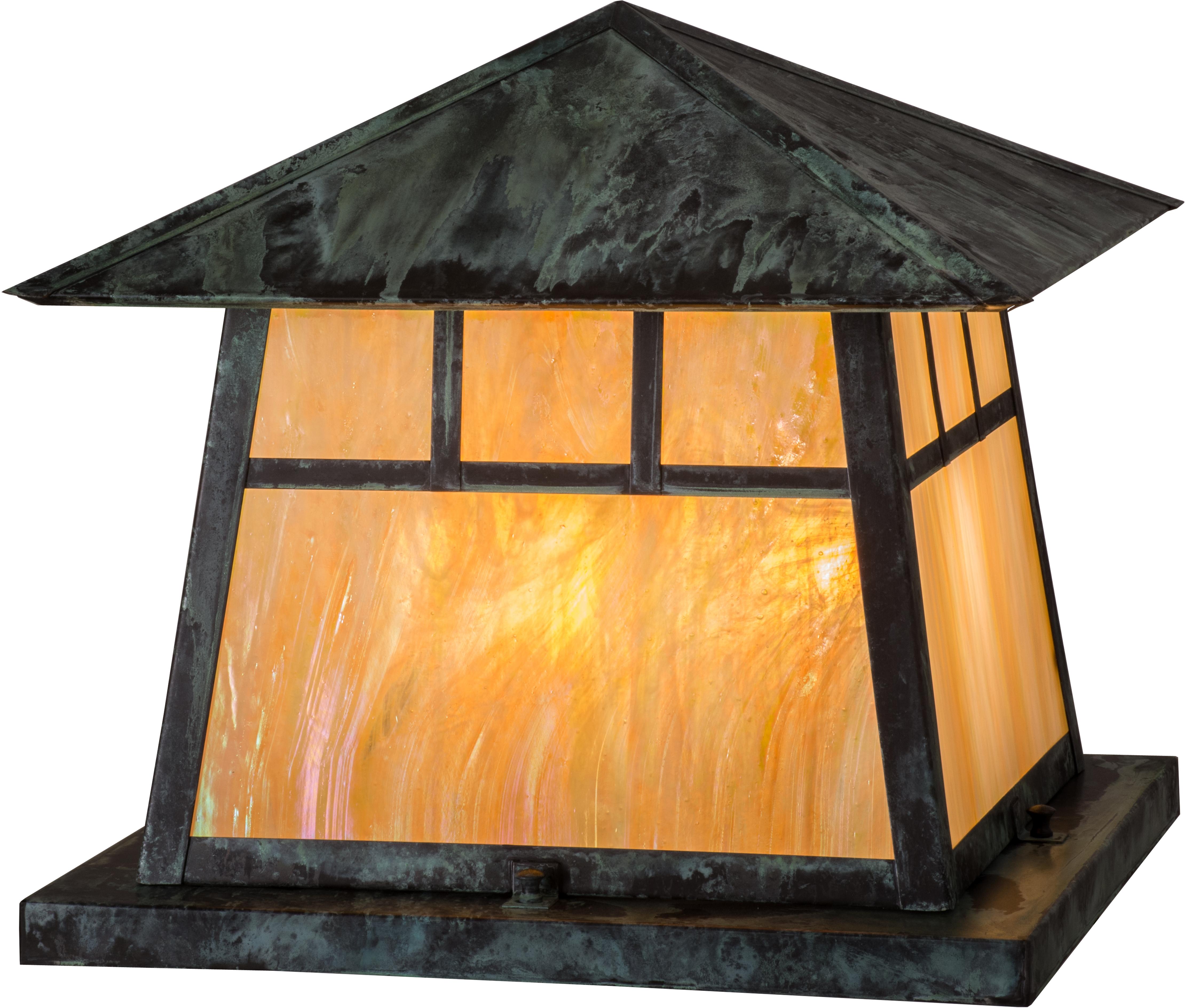 | Custom made from Solid Brass, a impressive CraftsmanSignature style look is emphatically presentedwith a striking Mission styled straight line style.Highlighted with Beige Iridescent art glass and a frameand hardware finished in Verdigris, this luminaire isideal for indoor and outdoor lighting applications. Thefixture is handcrafted by Meyda artisans in theYorkville, NY manufacturing facilities. Custom colors,styles and sizes are available. Meyda Tiffany Pier Mount Bulb Type: MED Bulb Qty: 4 Bulb Wattage: 60 |