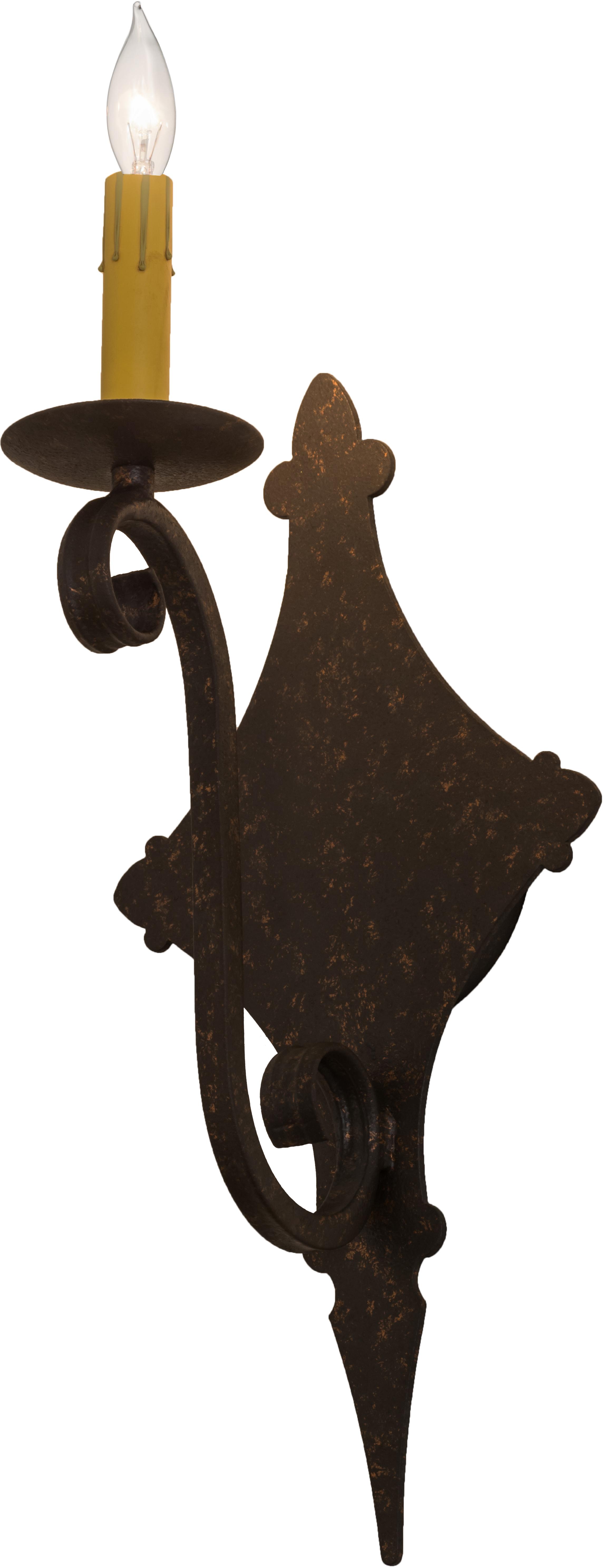 | Rich charm and and elegance come to light withAngelique, a wall sconce styleed as a dramatic accentfor a hallway, entryway or any other room. Thisenchanting wall fixture features a faux Ivorycandlelight perched on a bobeche, with a scrolled armand stylized diamond shaped hardware featured in aCopper Rust Texture finish. Handcrafted by highlyskilled artisans in our Upstate New York manufacturingfacility, this fixture is available in custom sizes,styles, colors and dimmable energy efficient lampingoptions. Meyda Tiffany One Light Depth: 8 Bulb Type: CNDL Bulb Qty: 1 Bulb Wattage: 40 |
