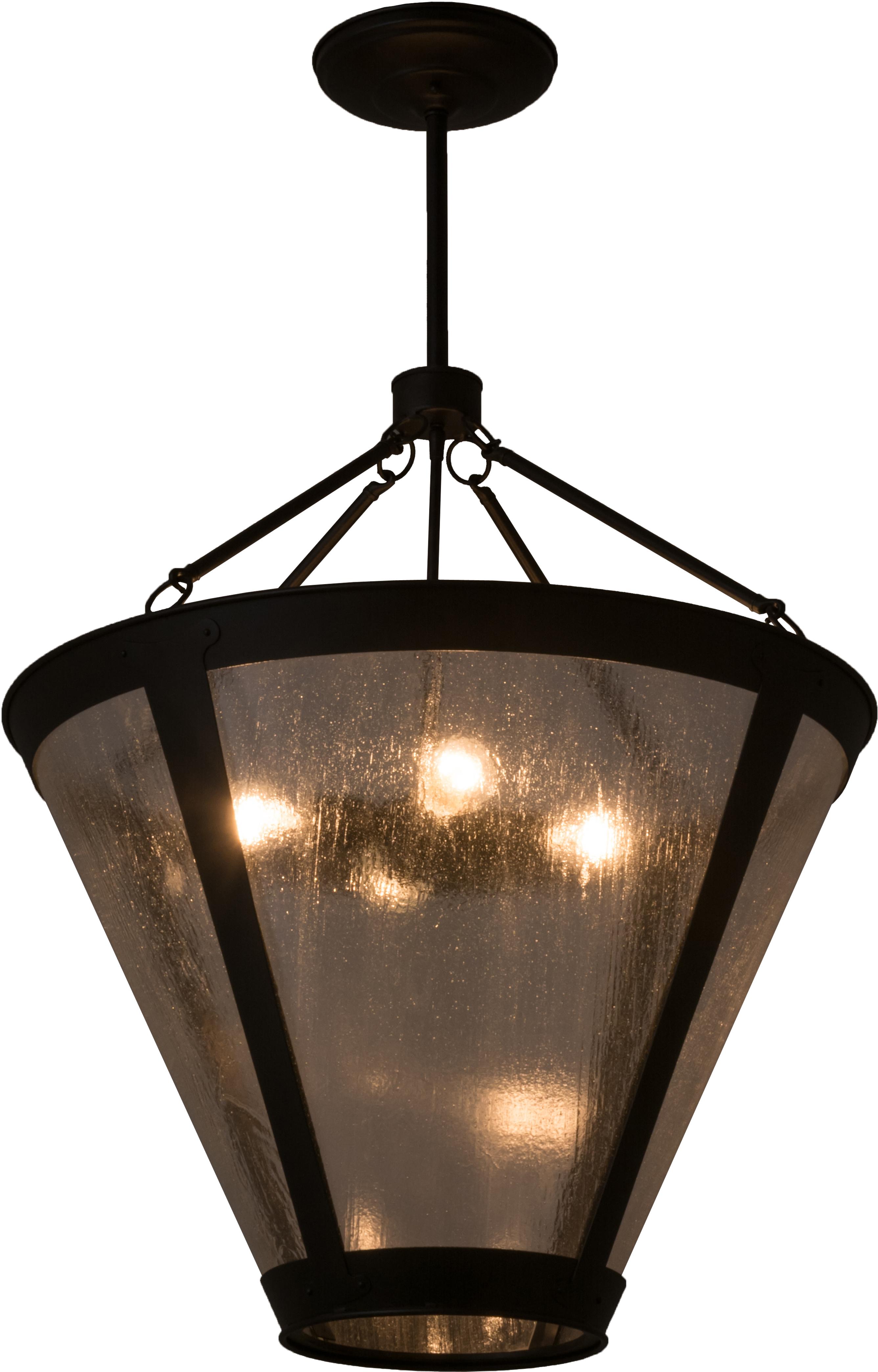 In the tradition of American master craftsman Dirk VanErp, this appealing hand finished Black Textured frameglows with the impressive Clear Seeded art glass within.This handsome pendant was maked by the hands of MeydaCraftsman at its manufacturing facility in Upstate NewYork in the USA. Custom sizes, styles and colors areavailable, as well as dimmable, energy efficientlamping options.