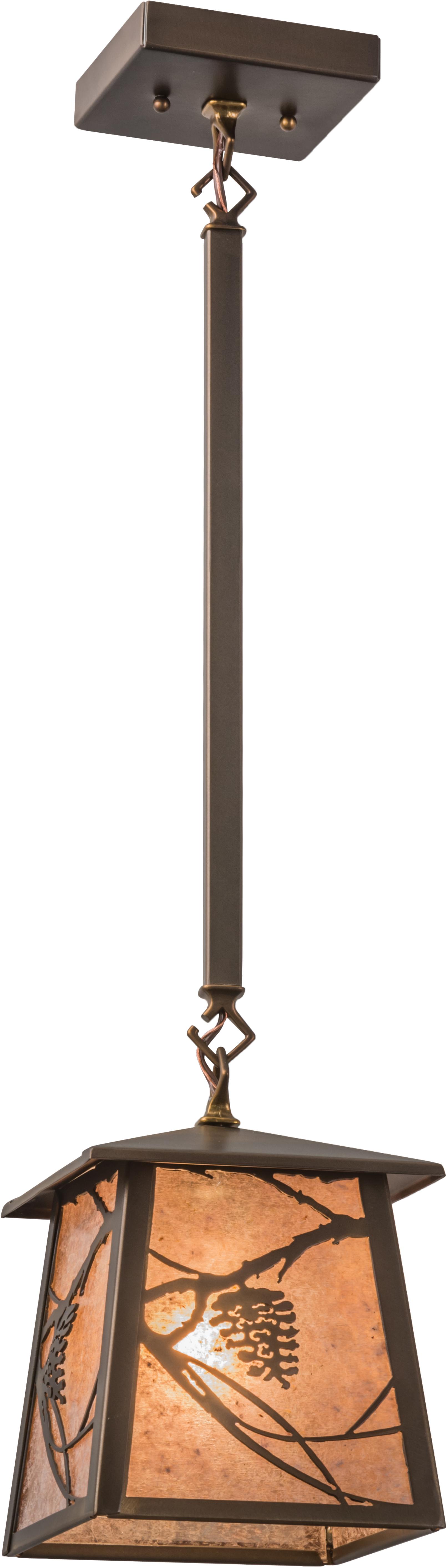 | Listen closely. You can almost hear the soft whisperof the pine branches as they dance in the wind. Enjoythe warm ambiance of soft gorgeous light diffusedthrough Silver Mica, which features impressive pineconeand pine branch styles. The accents and hardware areoffered in a handsome Antique Copper finish andhandcrafted by Meyda Artisans in Yorkville, New York atthe foothills of the Adirondack Mountains. Align thependant in multiples to illuminate a bar, counter,island or table in a variety of settings. make thestyle, colors, and the size and style of your choice.Energy efficient lamping options are available. Thefixture is UL and cUL listed for damp and drylocations. Meyda Tiffany Pendant Bulb Type: MED Bulb Qty: 1 Bulb Wattage: 100 |