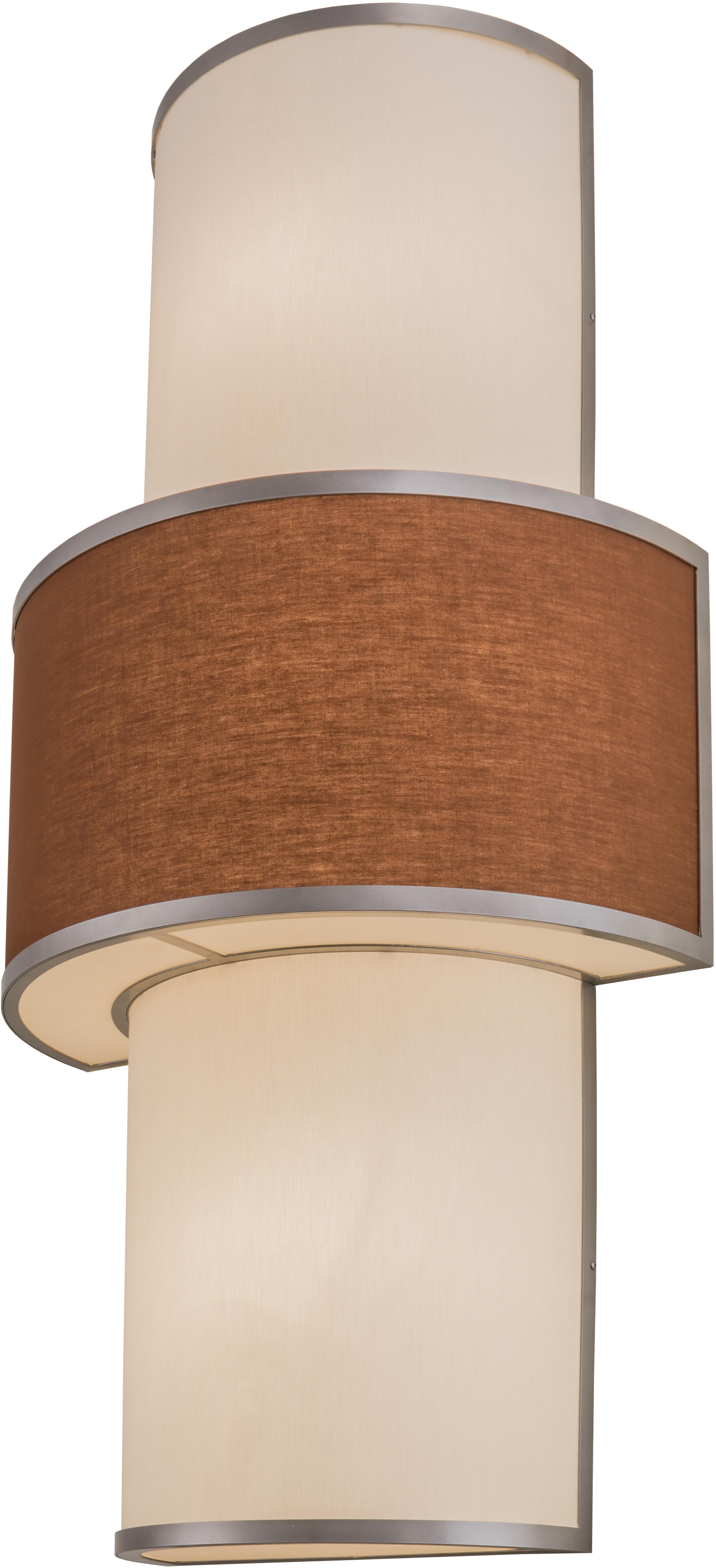 | A luxurious multi dimensional style reveals theexquisite, distinguished architectural look of this wallfixture. Clean sophistication astounds with roundsurfaces and straight lines to enhance a room whileproviding an effective source of light. The fixturefeatures a cylindrical diffuser in Anna Cream Textrene,which is wrapped with a Mahogany Textrene element. Theluminaire is enhanced with Nickel finished accents andhardware and is perfect illumination for corridors andother rooms. Handcrafted by Meyda artisans in the USA.Options include energy efficient lamping options, aswell as custom sizes, styles and colors. This sconce isUL and cUL listed for damp and dry locations. Meyda Tiffany One Light Depth: 12 Bulb Type: CNDL Bulb Qty: 4 Bulb Wattage: 40 |