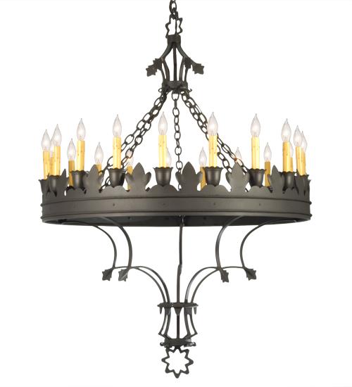| This handsome rustic styled chandelier is leafadorned and lighted by a ring of wax like candlabras.The fixture with chain suspension, candles and Wroughtiron finish, is remeniscent of ancient times and ishandcrafted in the USA by Meyda artisans. Meyda Tiffany Chandelier Bulb Type: CNDL Bulb Qty: 19 Bulb Wattage: 60 |