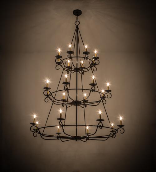 | Exquisite grace and delicate beauty are blended tomake a distinctive, exquisite Grand Chandelier. A totalof 24 Amber Faux candlelights, each embracing a bobecheand scrolled arm, adorn three tiers of this chandelier.The decorative accents and hardware are offered in analluring Delmonico Bronze finish. Perfect for a largeentryway, lobby, banquet hall or conference room, thischandelier is available in a variety of finishes,styles, sizes and energy efficient lamping options.Custom crafted in the USA, Estrella is UL and cULlisted for damp and dry locations. Meyda Tiffany Chandelier Bulb Type: CNDL Bulb Qty: 24 Bulb Wattage: 60 |