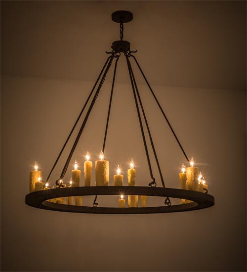 | make a warming, welcoming effect with thisdistinctive fixture for an entryway, grand dining roomor lobby. This exquisite chandelier features the charmof 24 faux Ivory candlelights paired with the strengthof a solid steel ring shaped frame finished in aClassic Rust hue. Custom crafted by artisans at ourmanufacturing facility in the USA, this fixture isavailable in custom colors, styles and sizes,as well asdimmable, energy efficient lamping. UL and cUL listedfor dry and damp locations. Meyda Tiffany Chandelier Bulb Type: CNDL Bulb Qty: 24 Bulb Wattage: 60 |