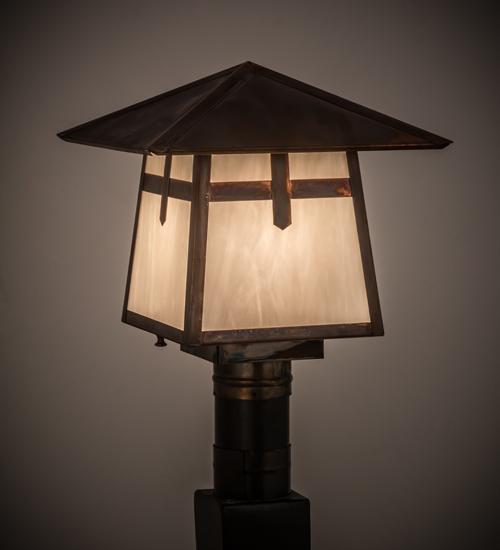 | The Cross Mission has Arts and Crafts style crossedbars that accents this handsome American Craftsmanlantern style post mount. The fixture, handcrafted inthe USA by Meyda artisans, is finished in VintageCopper and has White glass panels. Meyda Tiffany Post Mount Bulb Type: MED Bulb Qty: 1 Bulb Wattage: 60 |