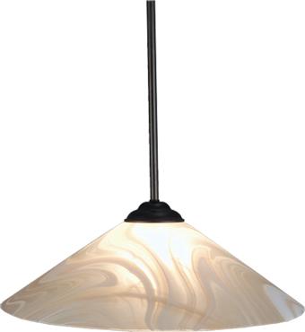| Sleek and upscale the metro pendant with cone shaped baroque art glass shade in a Peach and Vanilla toned Blush Swirl finish and Brushed Craftsman Brown finish, reflects the vibrant soul of the city. Total Height: 41.5" Custom Crafted In Yorkville, New York Please Allow 30 Days |