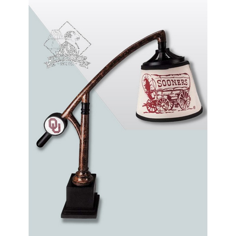 | 26inch Oklahoma Sooners Desk Lamp With InĀ Line Switch, 5x5'' base and 9'' wide Hardback ''Sooner Wagon'' Shade Desk Lamps |