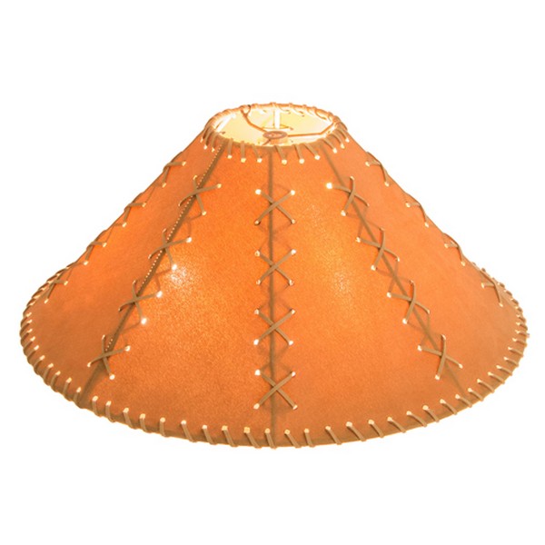 | This handsome Dark Tan Faux Leather lamp shade is trimmed with leather like lacings. The shade has a spider for use on a small lamp and a white fabric lining for added light reflection. Meyda Tiffany Faux Leather Replacement Part 26355 |