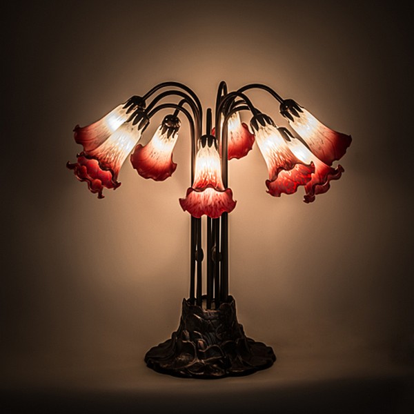 Meyda Tiffany 22in H Pink White Pond Lily 10 LT Table Lamp 12301