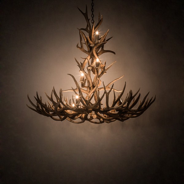Meyda Tiffany 52in Wide Antlers Mule Deer 12 LT Chandelier 200432
