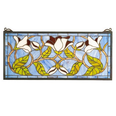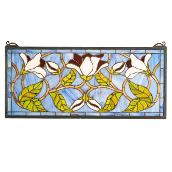 Meyda Tiffany 25in Wide X 11in High Magnolia Stained Glass Window 204638