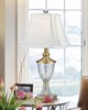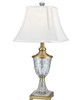 | Our Walker 24% Lead Hand Cut Crystal Table Lamp is elegance personified that will gorgeously complement any decor in your home. The high quality metal is the perfect accompaniment to the crystal in the center column. The urn shaped crystal makes a dazzling sparkling effect when illuminated. The metal breaks above and below draws the eye to the brilliant crystal work. We topped the Walker with a appealing fabric shade, styleed to direct light downward over the crystal to complete the look.Dale Tiffany Table Lamp Bulb Type: Med Base - E26 Bulb Qty (not included): 1 Bulb Wattage: 150W Shade Material: Fabric Base Material: 24% Lead Hand Cut Crystal and Metal Turn Knob 3-Way Switch Table Lamps |
