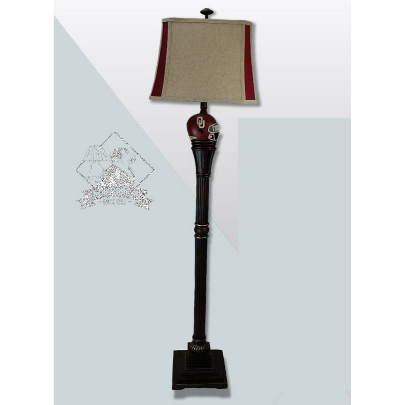 | 61'' Oklahoma Sooners Licensed Floor Lamp with 13x16x11 Gold Accents throughout Walnut-Toned Base Red Paneled Shade not currently available - supply chain issues - will be sent with matching plain shade. |