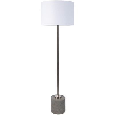 | Modern Floor Lamp Base: Silver 50.50H 9.00W Cord: Translucent 8.0000 Feet Bulbs Needed: 1 100Watt Bulbs Standard Socket: E26 Bulbs not included Drum Shade Included Color: White Lined Switch Location: Socket Switch Type: On Off Our Ledger Collection offers an enduring presentation of the modern form that will competently revitalize your decor space. These pieces are expertly crafted and hand finished to perfection ensuring quality helping to make these pieces a mainstay in your home. Crafted in China from Linen Cotton Polyester Steel Concrete Metal Metal. For optimal product care wipe clean with a dry cloth as needed. Manufacturers 30 Day Limited Warranty. Floor Lamps |