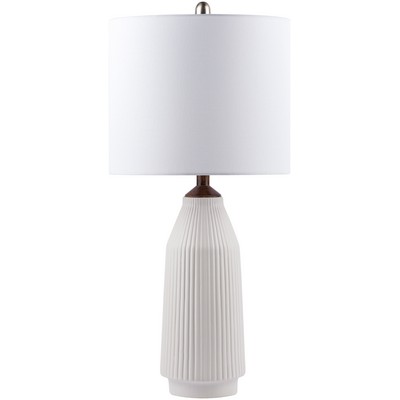 | Modern Table Lamp Base: 19.75H 6W Cord: Translucent 6.0000 Feet Bulbs Needed: 1 100Watt Bulbs Standard Socket: E26 Bulbs not included Drum Shade Included Color: White Lined Switch Location: Socket Switch Type: On Off Our Lonic Collection offers an enduring presentation of the modern form that will competently revitalize your decor space. These pieces are expertly crafted and hand finished to perfection ensuring quality helping to make these pieces a mainstay in your home. Crafted in China from Linen Ceramic Ceramic Metal. For optimal product care wipe clean with a dry cloth as needed. Manufacturers 30 Day Limited Warranty. Table Lamps |