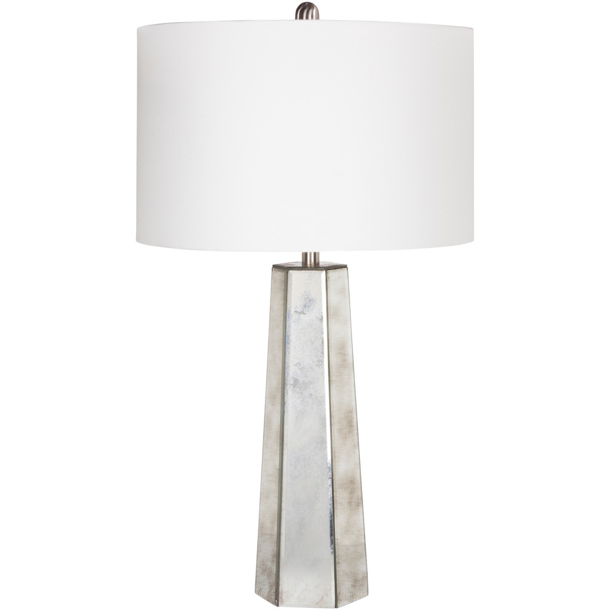 | Modern Table Lamp Base: Silver H W Cord: 6.0000 Feet Bulbs Needed: 1 100Watt Bulbs Standard Socket: E26 Bulbs not included Drum Shade Included Color: White Switch Location: Socket Switch Type: 3Way Our Perry Collection offers an enduring presentation of the modern form that will competently revitalize your decor space. These pieces are expertly crafted and hand finished to perfection ensuring quality helping to make these pieces a mainstay in your home. Crafted in China from Linen Mirror Metal. For optimal product care wipe clean with a dry cloth as needed. Manufacturers 30 Day Limited Warranty. Table Lamps |
