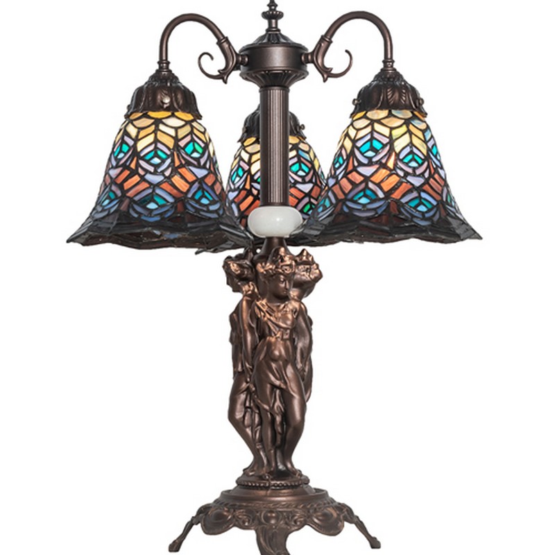 Meyda Tiffany 23in High Tiffany Peacock Feather 3 Light Table Lamp 245482