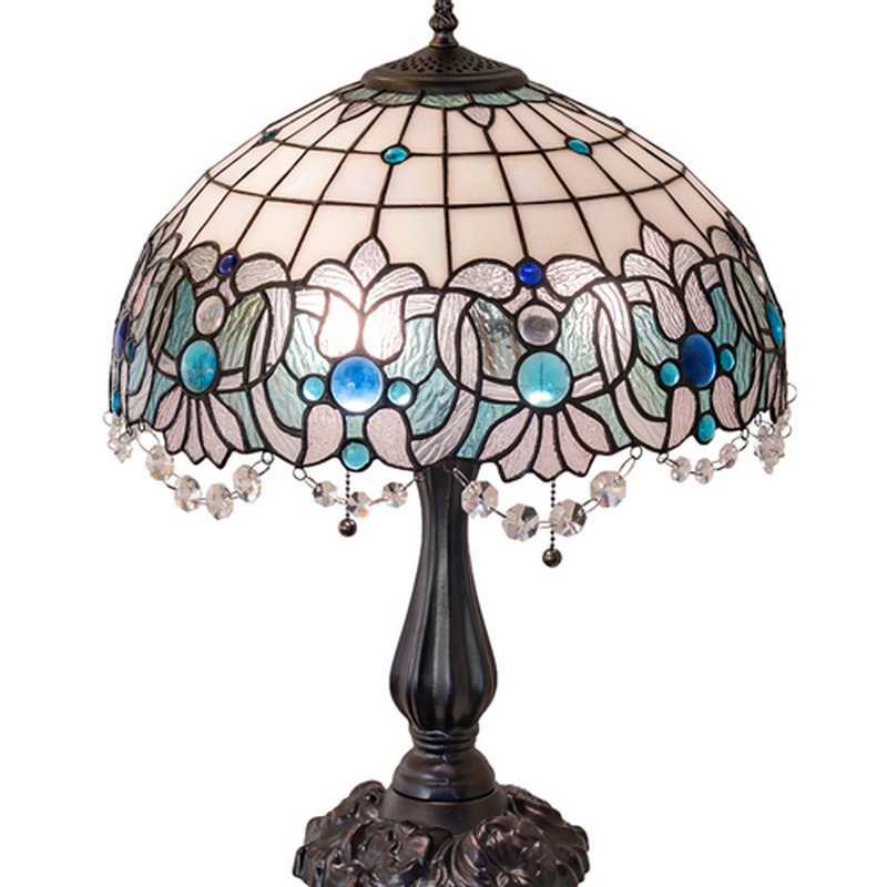 Meyda Tiffany 21in High Angelica Table Lamp BLUE;CLEAR;IRIDESCENT