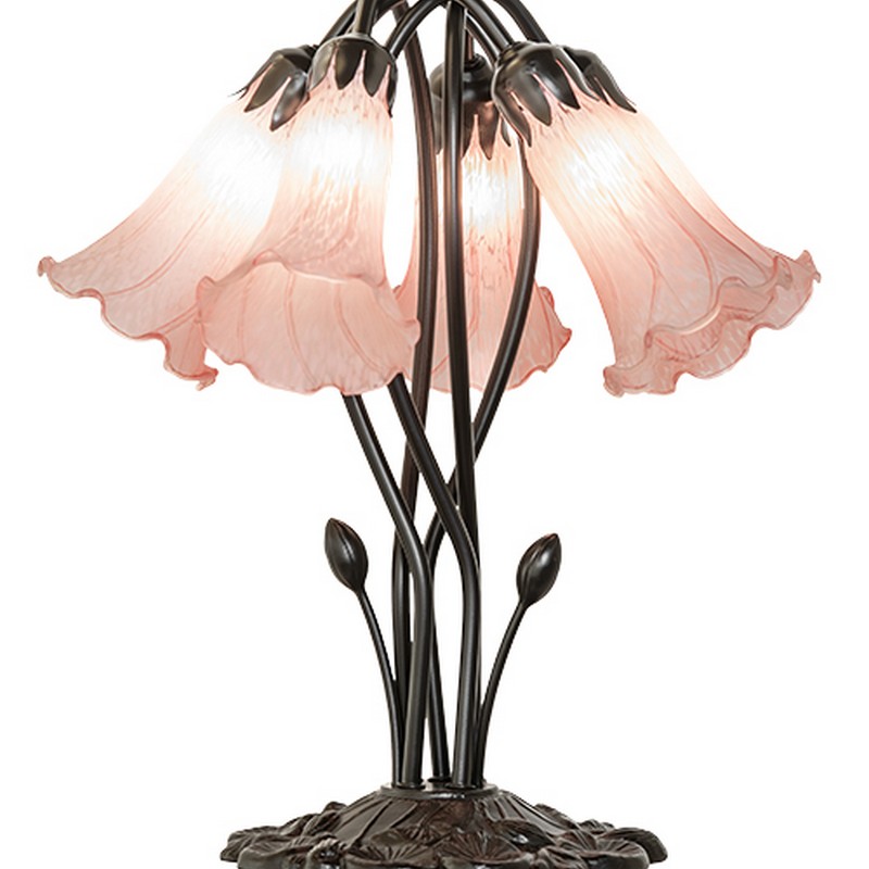 Meyda Tiffany 16in High Pink Tiffany Pond Lily 5 Light Table Lamp 262216