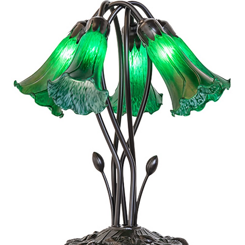 Meyda Tiffany 16in High Green Tiffany Pond Lily 5 Light Table Lamp 262219