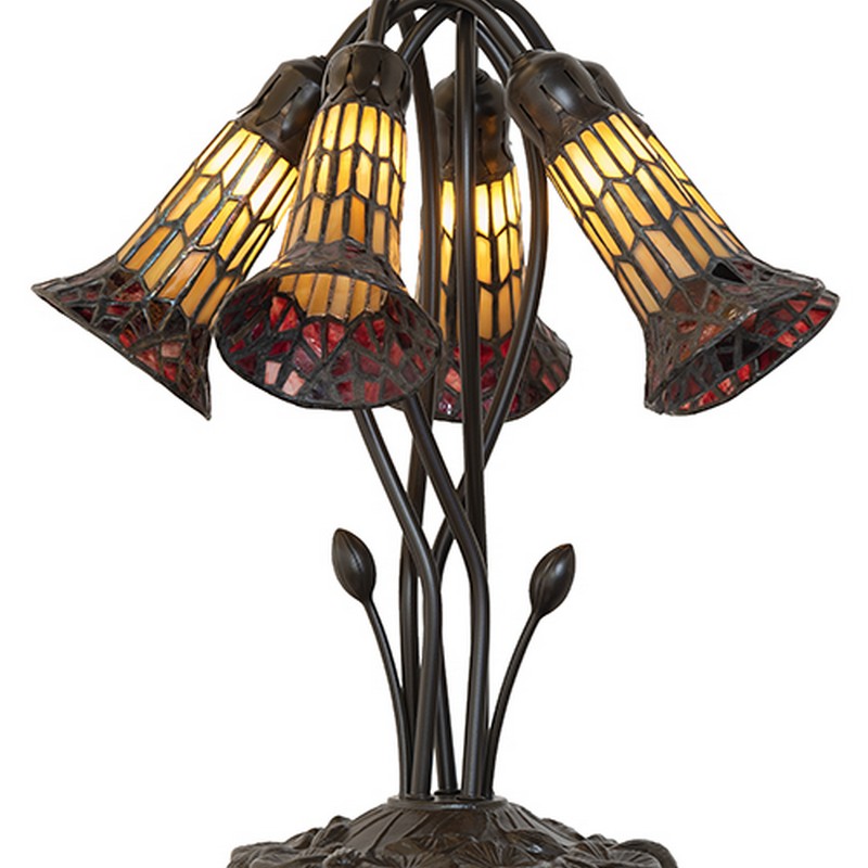 Meyda Tiffany 16in High Stained Glass Pond Lily 5 Light Table Lamp 262227