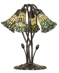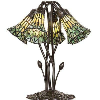 Meyda Tiffany 16in High Stained Glass Pond Lily 5 Light Table Lamp 262230