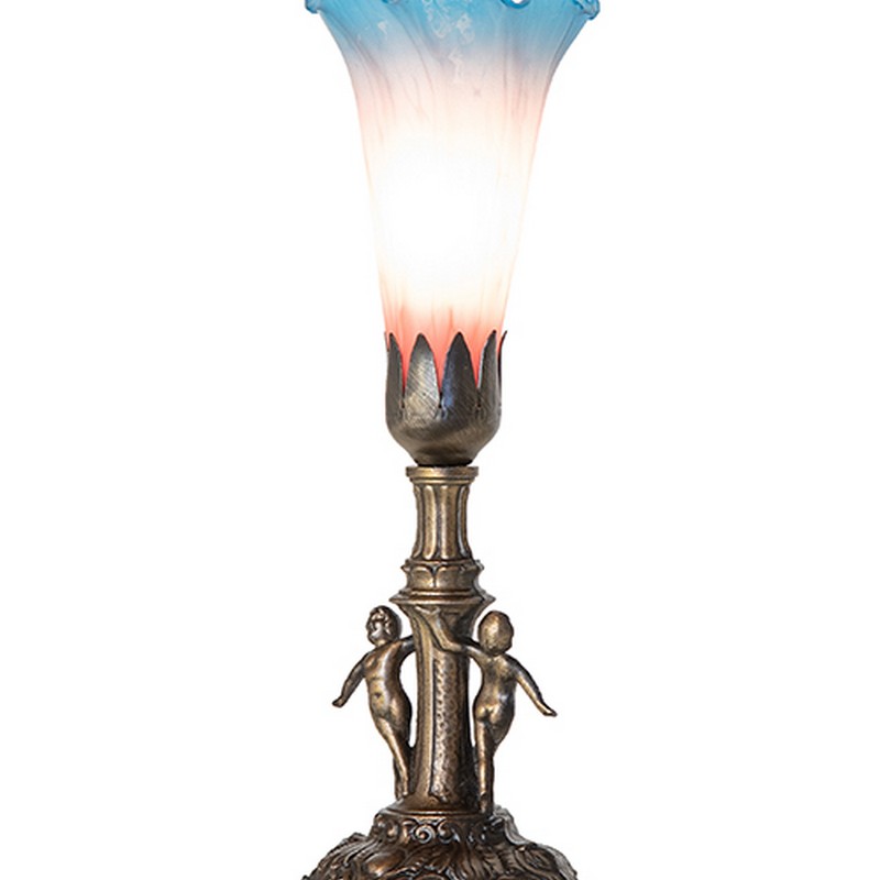 Meyda Tiffany 11in High Pink Blue Tiffany Pond Lily Maidens Mini Lamp 262939