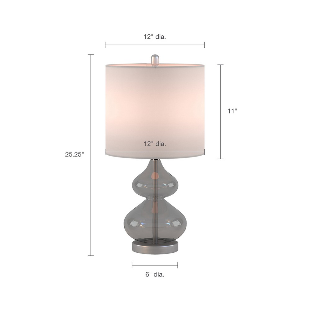| 510 Design Set of 2 2 Table Lamp: 12" Dia x 25.25"H (2) Shade Size: 12" Dia x 11"H Body Size: 8" Dia x 17"H Base Size: 6" Dia x 1"H Socket Size: 1.5" Dia x 2.5"H Cord Length: 72" Material: 70% glass, 25% fabric, 5% iron Body Material: Iron and glass Shade Material: 40% plastic, 26% cotton, 20% metal, 14% polyester Base Finish: Silver Casual Style Includes 2 Piece(s) spot clean only The Ellipse Curved Glass Table Lamp, Set of 2 provides a tasteful and charming touch to any space. The elegant curves of the gray glass base are complemented by a white drum-shaped shade, for a chic look. Accent your living room or add more light to your bedroom with the transitional appeal of this table lamp. Two type A light bulb is needed and included. Comes with a 2-year warranty. |